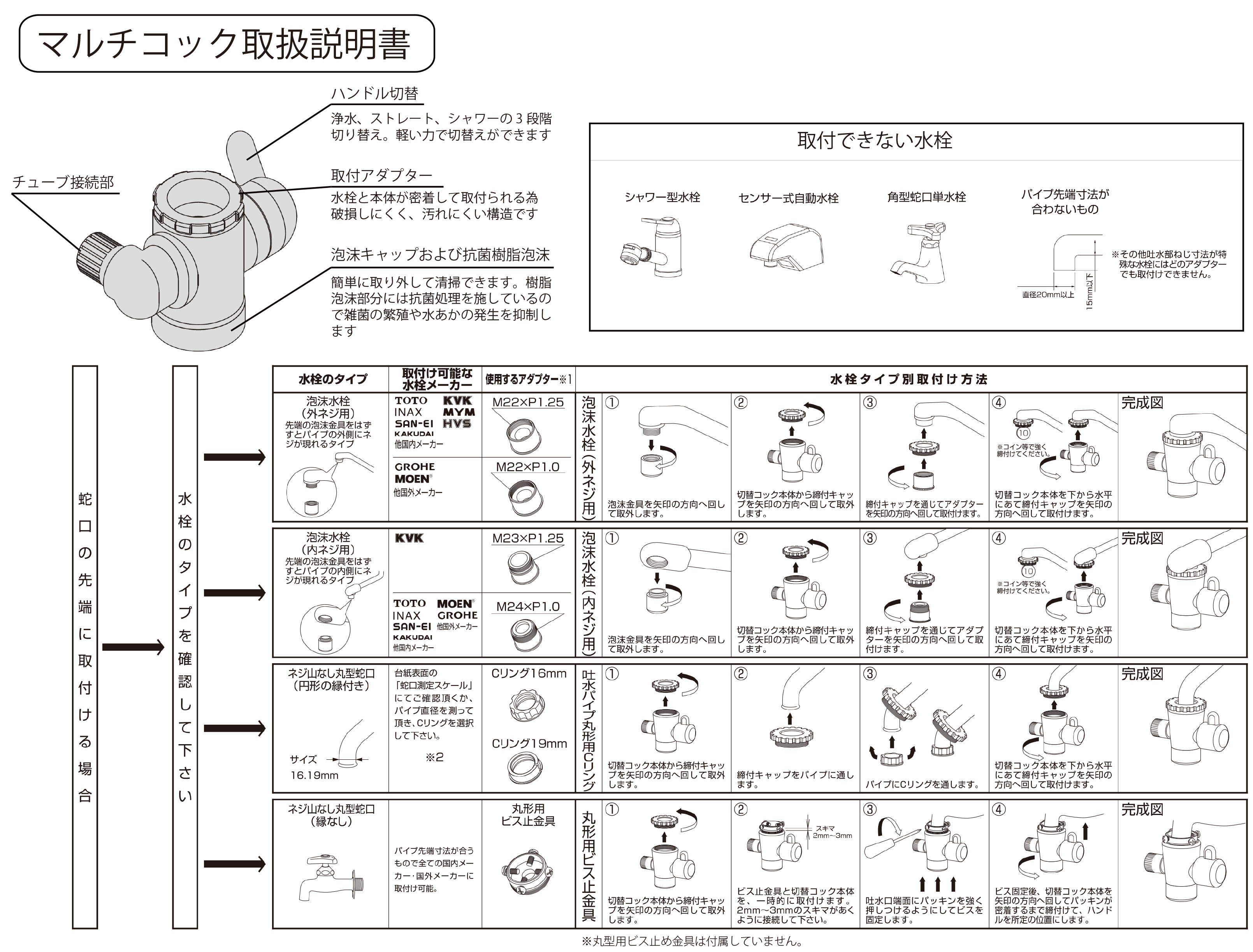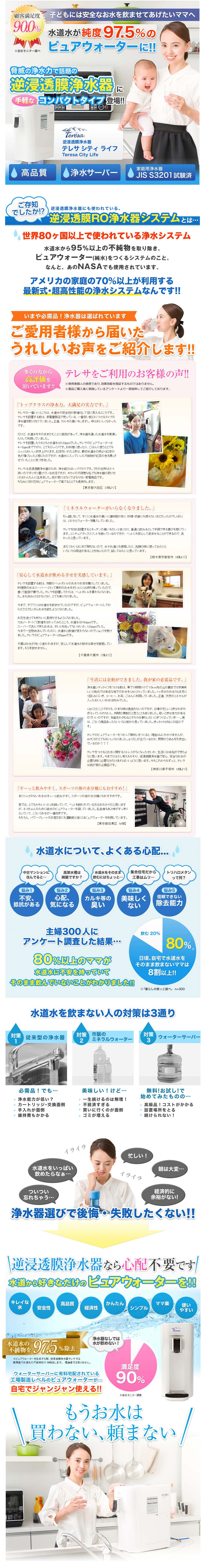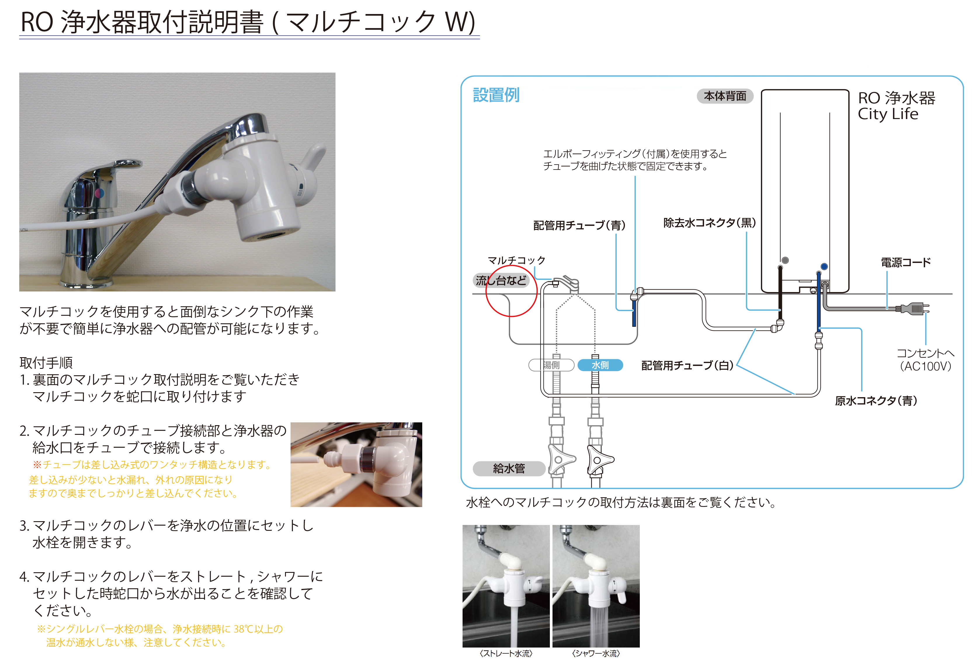 TOP浄水器 常温水 水道管直結式 逆浸透膜浄水器 City Life 価格: ¥53,000 (税込 ¥58,300) 販売期間: 数量: 個 在庫: × 在庫 × 返品についての詳細はこちら 水道水直結型の逆浸透膜ろ過方式の浄水器です。 卓上タイプで省スペースでも設置可能。 常温専用ですが、いつでも浄水が使用できます。 ネットショップ限定で取付用マルチコックが付属します。 マルチコックを使用した取付方法 マルチコック取扱説明書